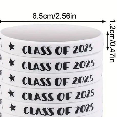 Silicone Graduation Bracelets, Class of 2025 Rubber Wristbands white color