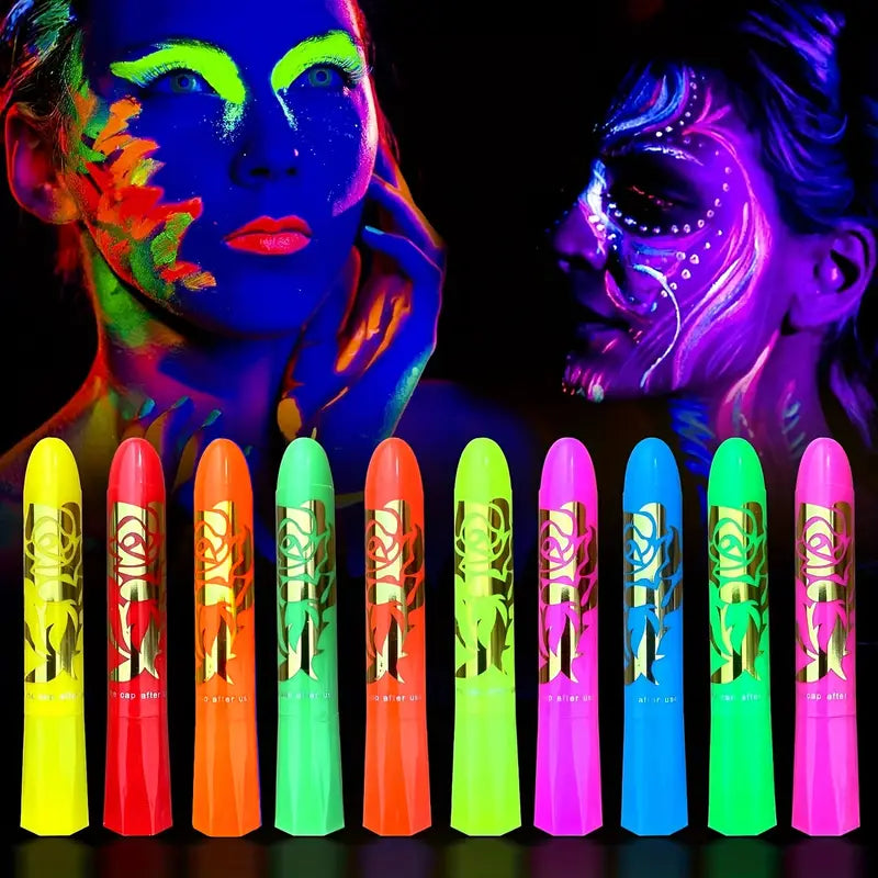 Glow-in-the-Dark Face & Body Paint Sticks 10 pcs set